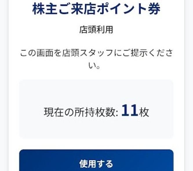 - もう1度、「株主ご来店ポイント券」のバーコードをスキャン。