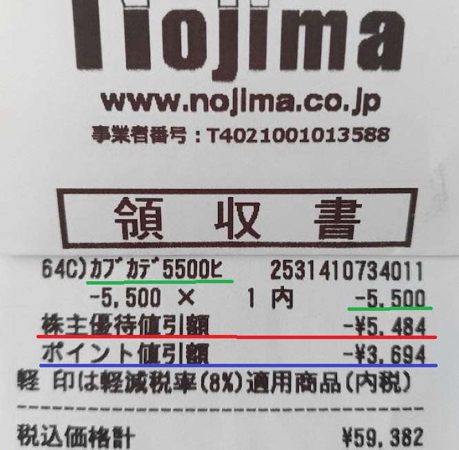 - ノジマポイント付与(割引前の金額の1%・今回は3%)