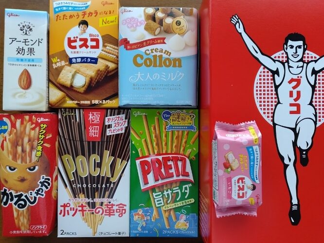 ゴールインマーク(グリコのロゴ)の大きな箱に入っています。