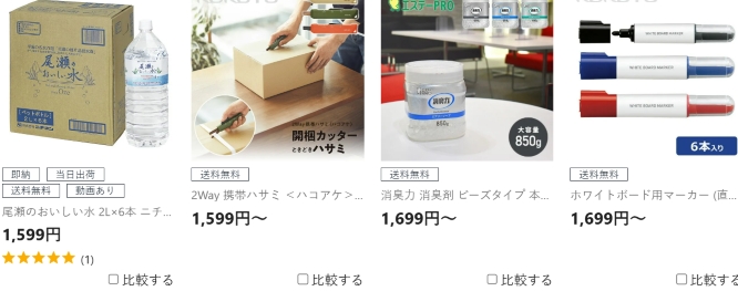 キッチン・日用品の安い順にすると、生活必需品(水など)がありました。