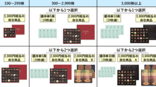 食物・飲物が貰える株主優待一覧です。自社製品が送られてくるため、投資企業の商品を試食出来ます。
